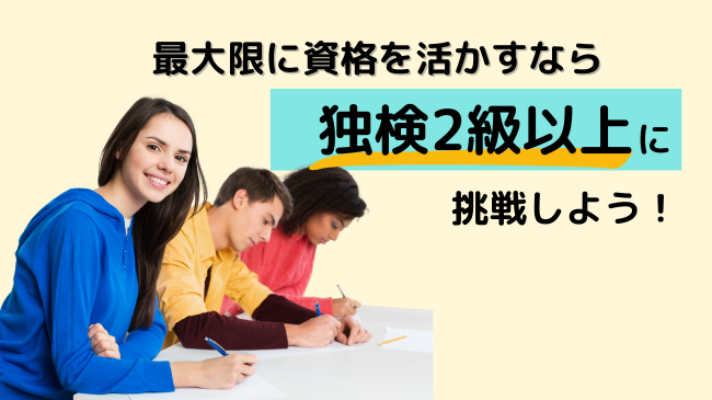 最大限メリットを活かすなら独検2級以上に挑戦しよう!